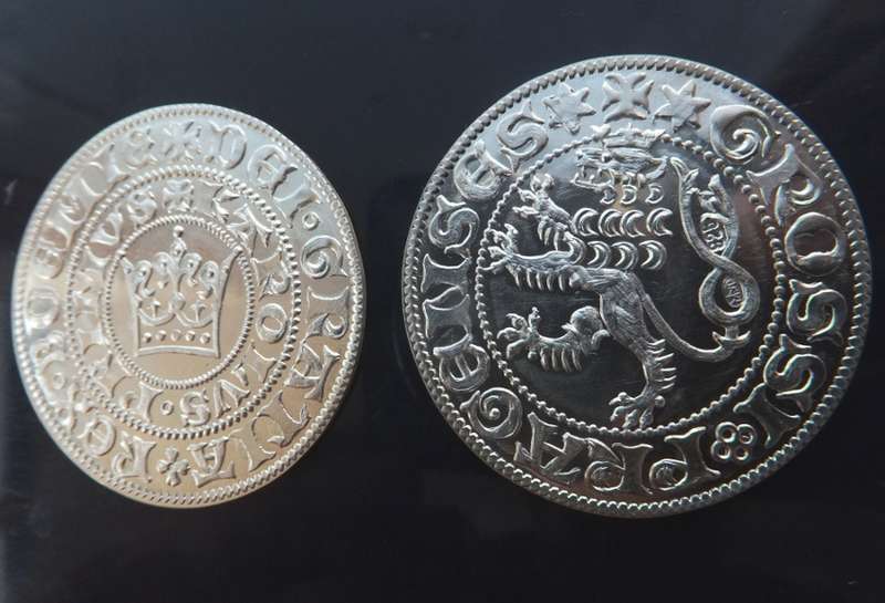 Razíme stříbrné a zlaté repliky historických mincí, medaile a medailony na krk. Jsme registrováni na Puncovním úřadě v Praze a byla nám přidělena výrobní značka MD typu III/10, kterou budou, spolu s ryzostní značkou a značkou Puncovního úřadu, Vaše mince řádně označeny.
